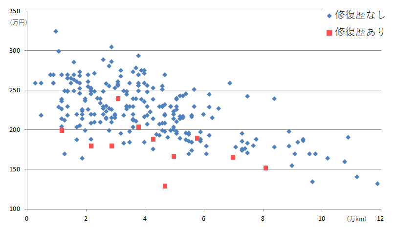 ※ここからは修復歴ありの車両11台を除いたデータです。